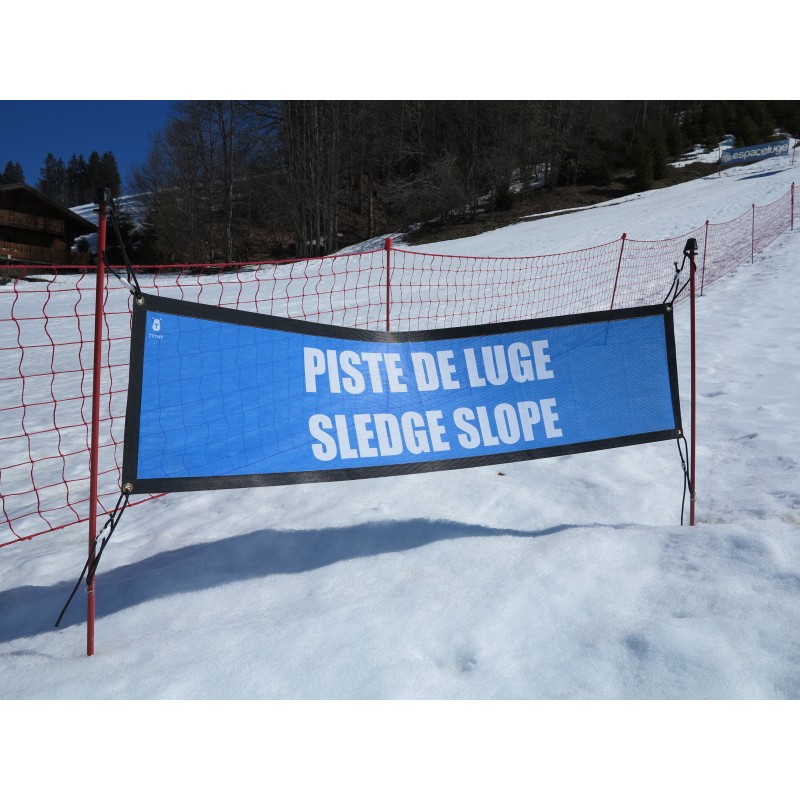Toutes nos banderoles incluent leurs accessoires de fixation et peuvent être livrées avec piquets fibre Ø16mm hauteur 150cm (1 piquet tous les 200cm).